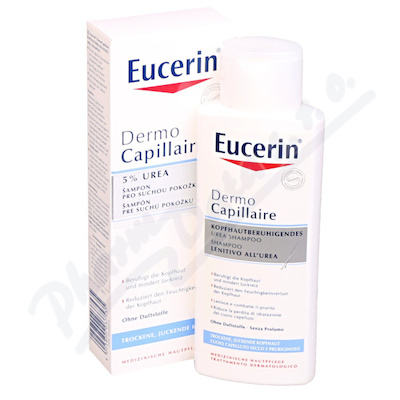 Eucerin DermoCapillaire šampon na vlasy 5% UREA pro suchou pokožku je vhodný pro suchou,svědící pokožku a jako kompl.péče při dermatologické léčbě atopického ekzému a lupénky. Vhodný pro děti od 3 let. Jemné složení bez parfemace minimalizuje podráždění.