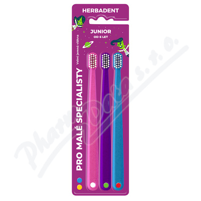 Ve spolupráci s českými stomatology a dentálními hygienistkami nově vyvinuté zubní kartáčky Herbadent JUNIOR splňují nároky moderní zubní péče o dětské zuby. Speciálně tvarovaná, v obou rozměrech zmenšená hlava kartáčku, osazená velmi jemnými vlákny.