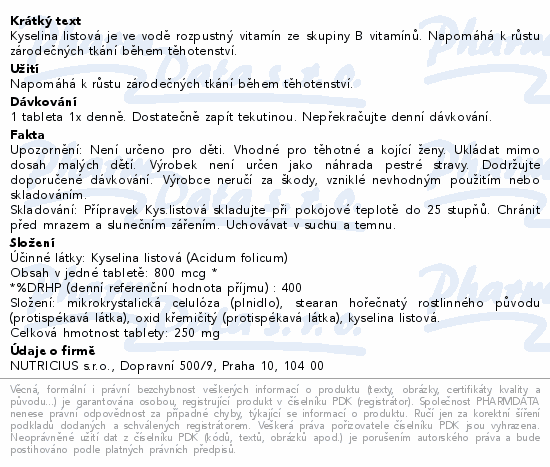Kyselina listová je ve vodě rozpustný vitamín ze skupiny B vitamínů. Napomáhá k růstu zárodečných tkání během těhotenství.